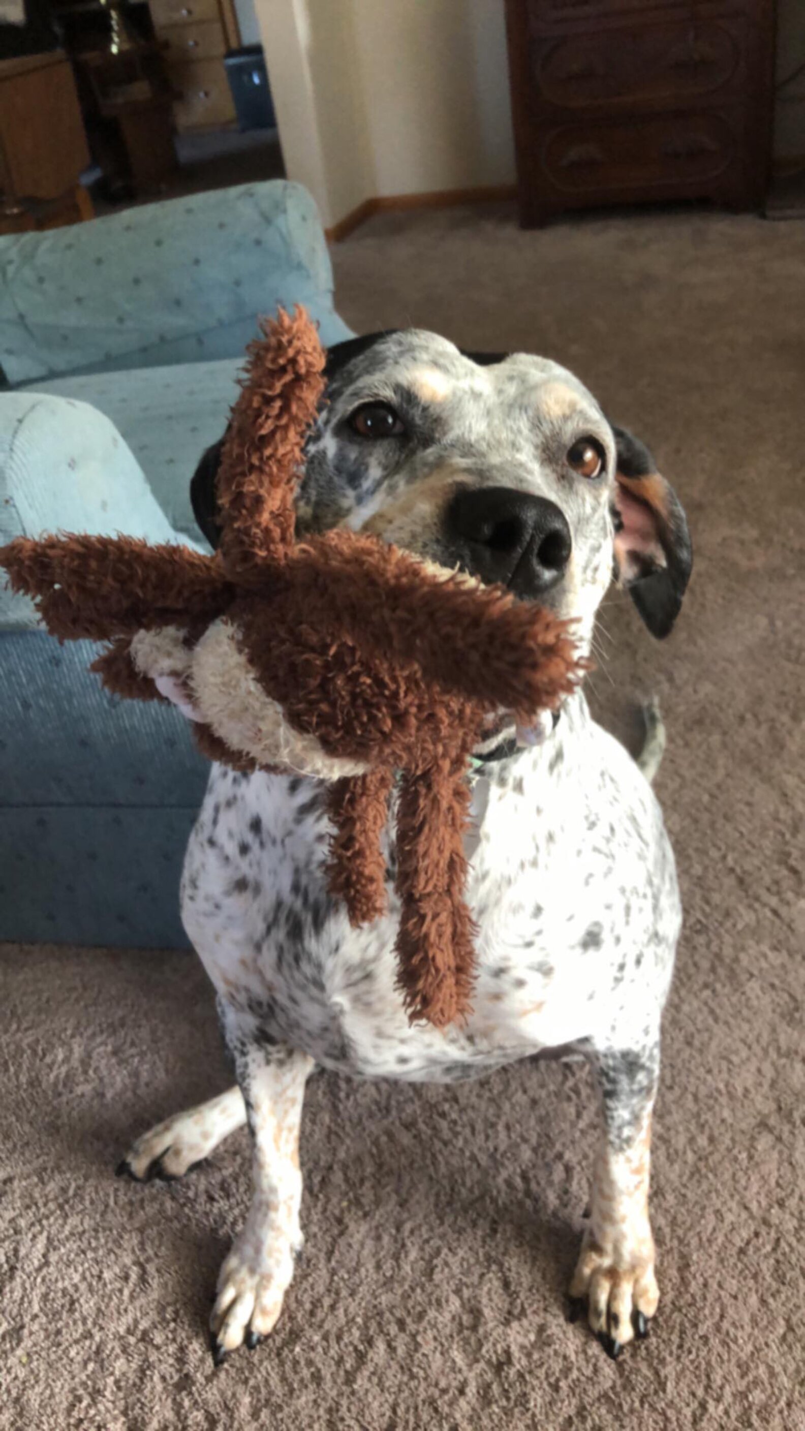 Cordova-Rojas เขียนบน Instagram. "เมื่อฉันพาเธอเข้ามาครั้งแรกเธอไม่สามารถยืน บางและเงียบสงบ. ที่นี่เธอกําลังเขย่าขนหางของเธอเมื่อเห็นความสนใจในความรักที่อาจเกิดขึ้น